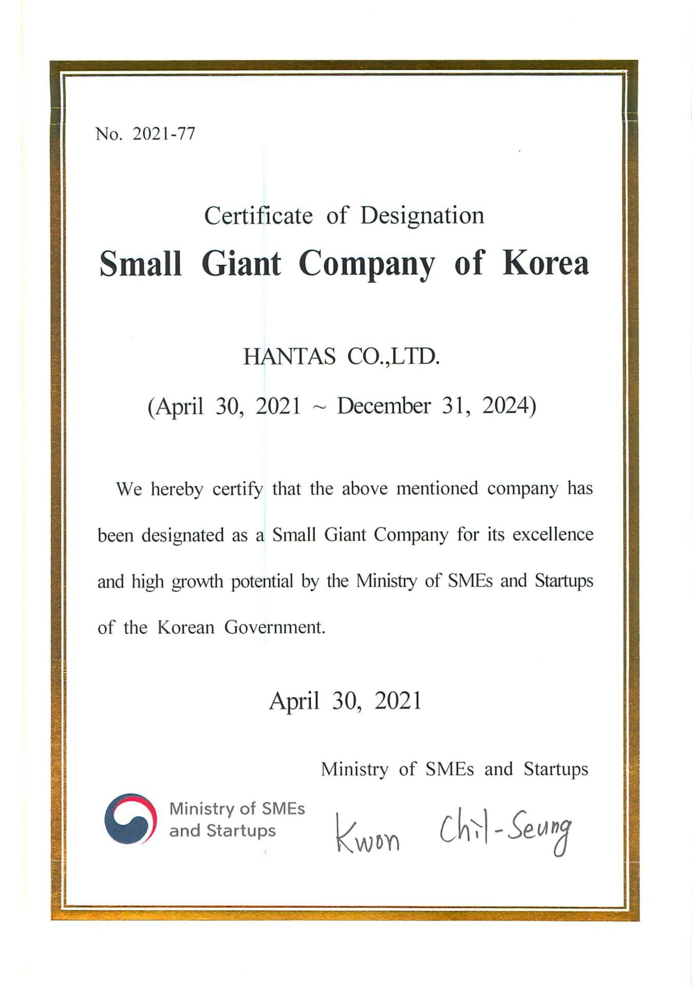 Gyeonggi promising company certificate